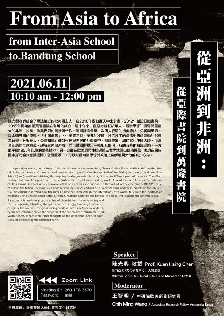 | 從亞洲到非洲:從亞際書院到萬隆書院(From Asia to Africa, from Inter-Asia School to Bandung School)。 |