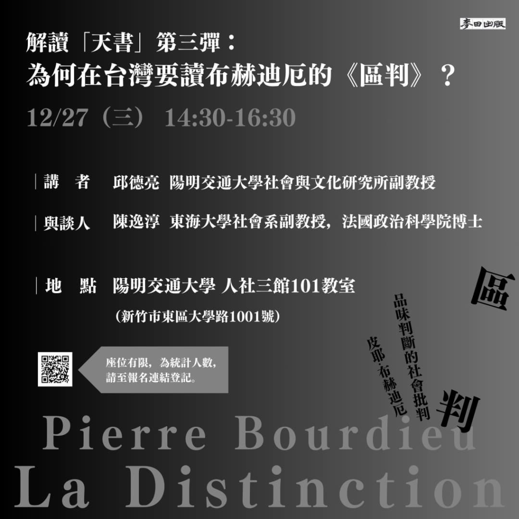 解讀「天書」第三彈:為何在台灣要讀布赫迪厄的《區判》?